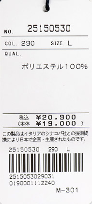 M:肩幅(42) 胸囲(104) 着丈(68) 袖丈(21)