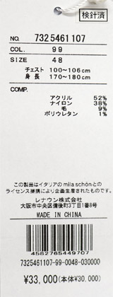 本体・アクリル52%・ナイロン38%・毛9%・ポリウレタン1%