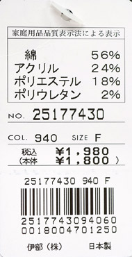 綿56% アクリル24% ポリエステル18% ポリウレタン2%
