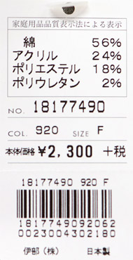 綿56% アクリル24% ポリエステル18% ポリウレタン2%