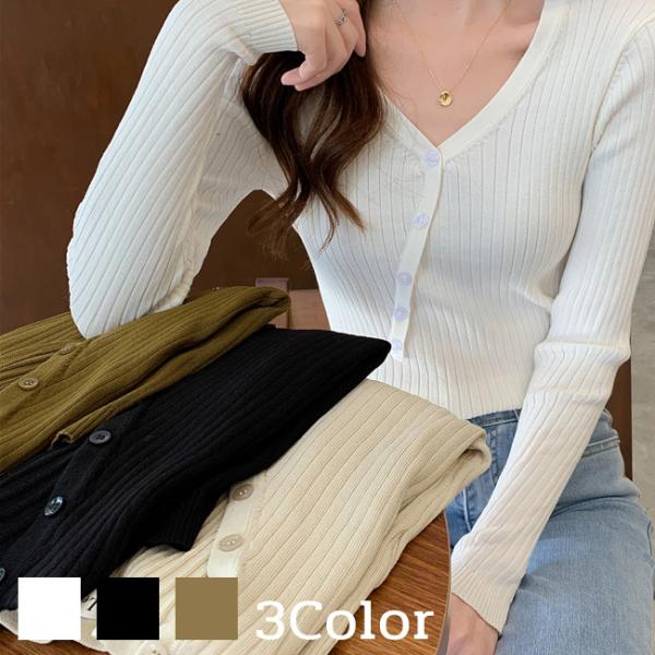 - Vネックリブニットトップス