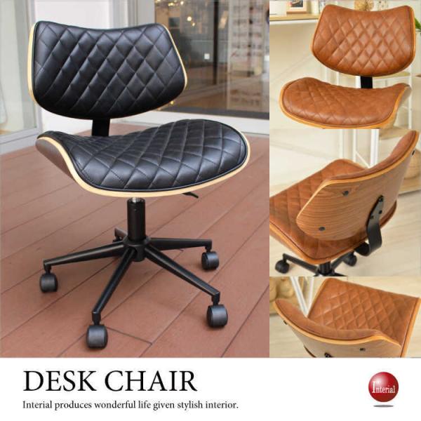 - ハイデザイン・PUレザー&ウッド調デスクチェア