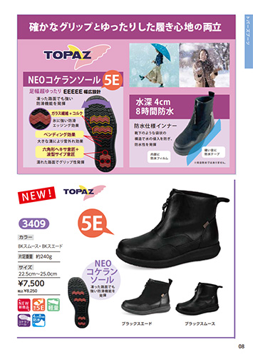 トパーズ スノー ブーツ レディース 滑らない ショート 防水 凍結 裏起毛 幅広 5e 歩きやすい 防寒 防滑 軽量 レイン コンフォート シューズ 靴 3409 TOPAZ 爆買