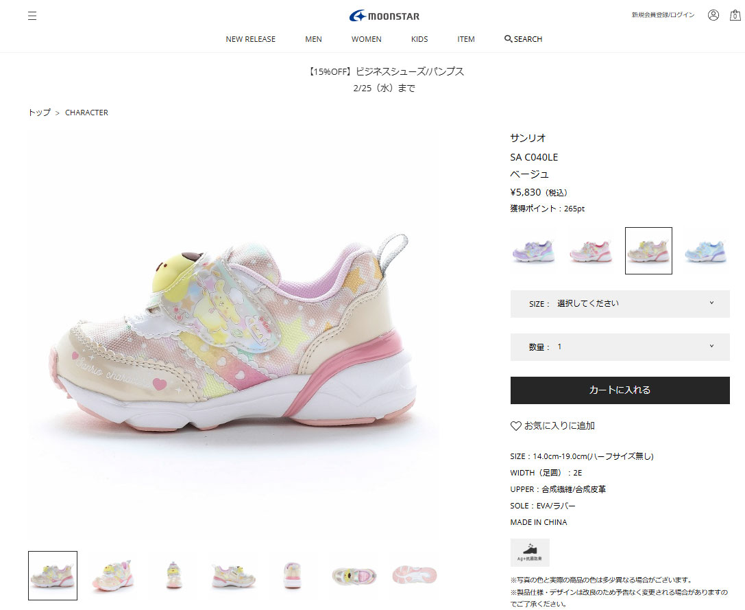 MOON STAR ムーンスター サンリオ 14 15 16 17 18 19cm