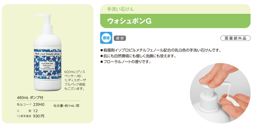 サラヤ ウォシュボンG 480ml 手洗い用石けん液 殺菌・消毒 SARAYA 4987696239401/23940