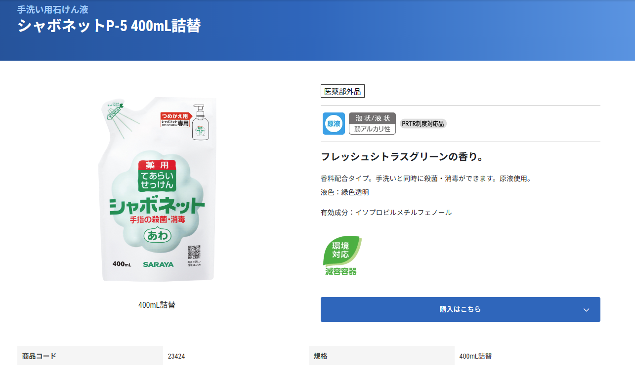 病院へ勤務していた時分に、各メーカーさんからサンプリングを行って頂き、サラヤさんのシャボネットシリーズを使用していました。自宅でも常にこのシリーズを使用しています。おススメです。