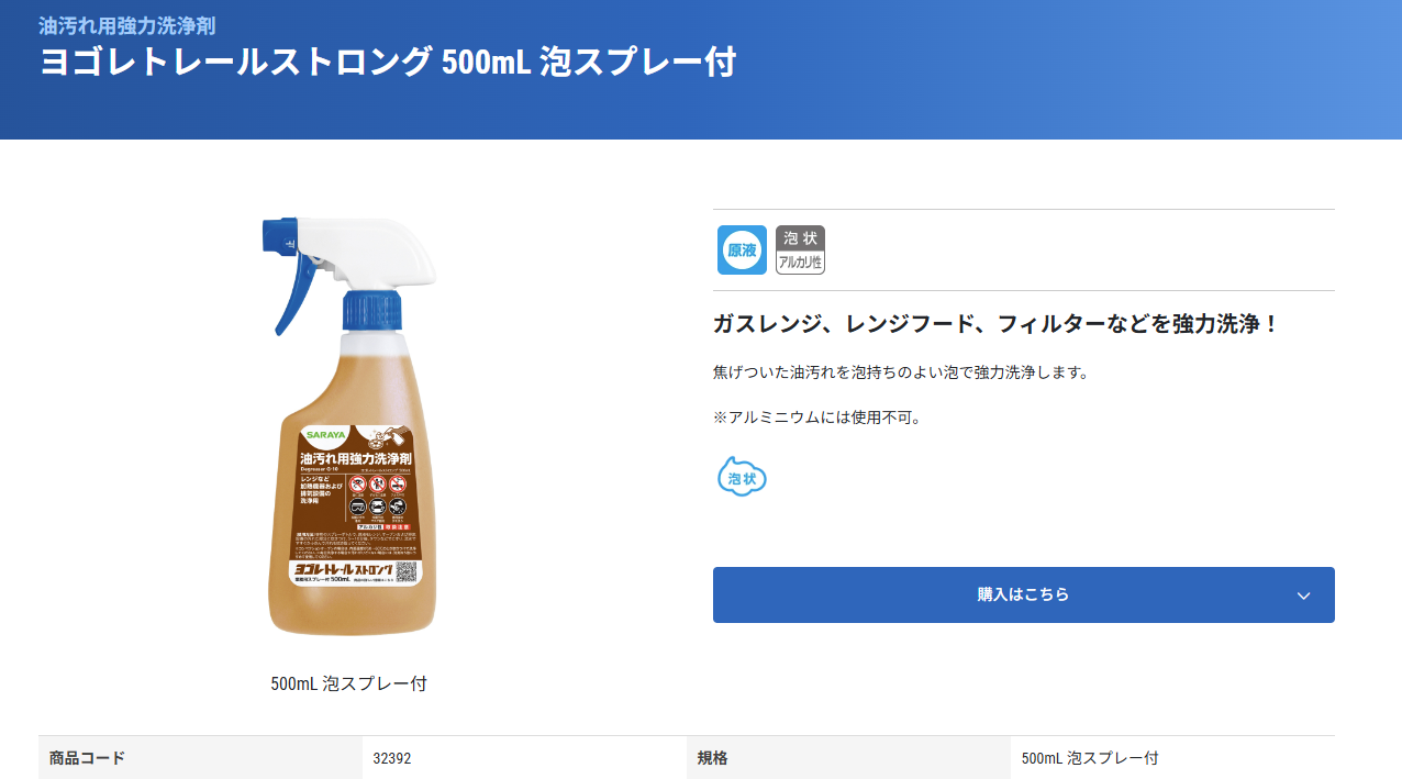 サラヤ ヨゴレトレール ストロング 500ml 油汚れ強力洗浄剤 泡スプレー付 SARAYA 4987696323926/32392