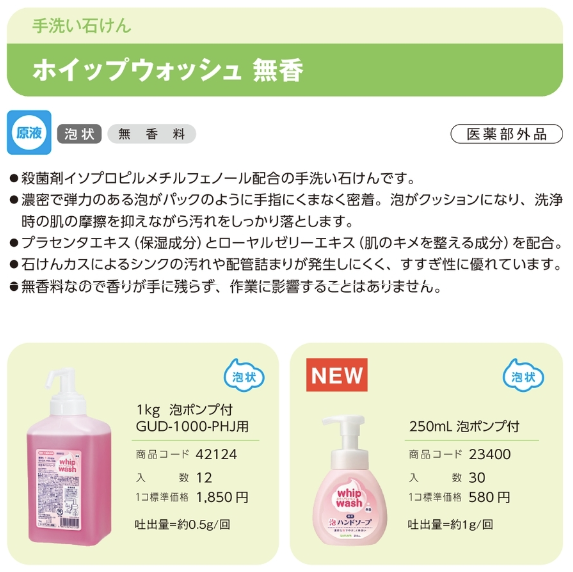 入院時の各部屋に設置されていたのがこの品です。ホイップウォッシュを使って何度も手洗いしても保湿されていることに感動し、こんな良品があるとは知らなかったと、すぐさま購入しました。手荒れしないと家族にも好評です。今後も使い続けていきます。