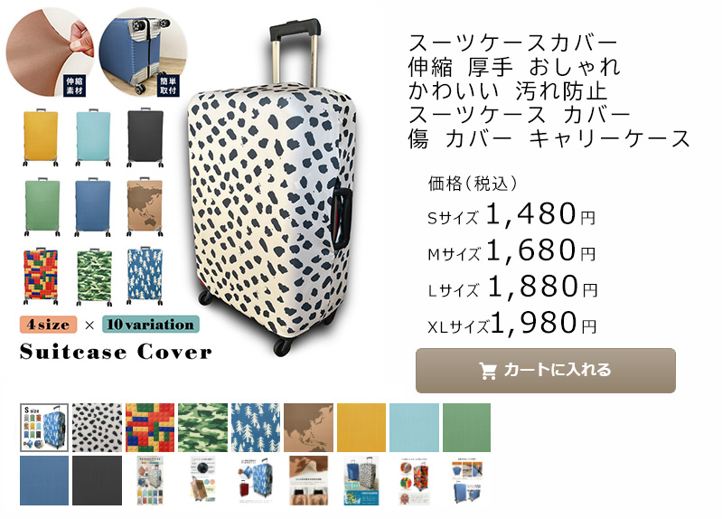 以前使用していたカバーがマジックテープで止めるタイプで、空港のターンテーブルで戻ってくる時に外れていることがあった為、今回はファスナーで留めるタイプを探していました。色や柄も好みだったので、こちらの商品を購入し、先日使用しました。ターンテーブルで戻ってきた時も、移動時も外れることはなく、ストレスフリーで使用できました。生地が乾きやすいのもとても良いです(晴天の夜に洗濯して干したら、翌朝には乾いていました)。長く使えそうな商品を購入できて良かったです。ありがとうございました。
