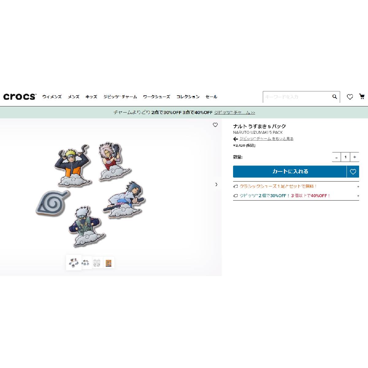 【60%OFF】 CROCS NARUTO JIBBITZ 5 PACK クロックス ジビッツ チャーム アクセサリー 5パック メンズ レディース 10012682【追跡可能メール便・日時指定不可】