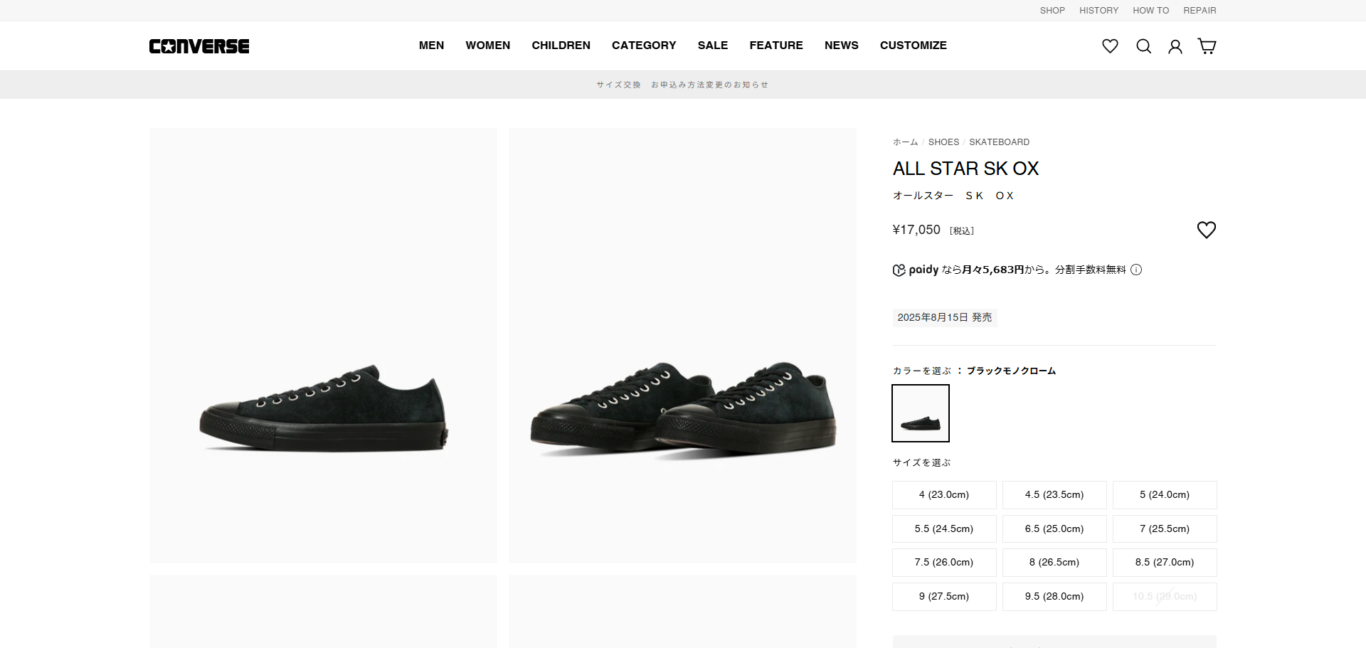 【40%OFF】 CONVERSE ALL STAR SK OX コンバース オールスター SX OX メンズ レディース BLACKMONOCHROME ブラック 33701900