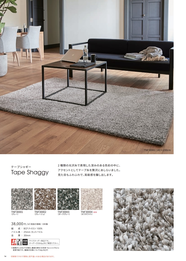 日本製 シャギーラグ ラグマット リビングラグ 高級ラグ 東リ 受注生産 絨毯 納期1か月 /テープシャギー 25mm