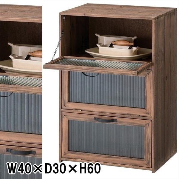 - フラップチェスト キャビネット/ガラス 扉付き 3段/幅40 奥行30 高さ60おトク41%OFF価格