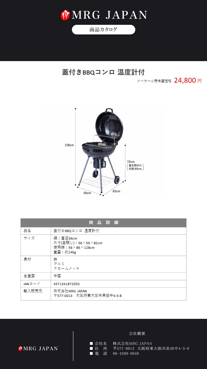 ドラム缶 式も人気ですが、やっぱり蓋付きBBQコンロ 温度計付。