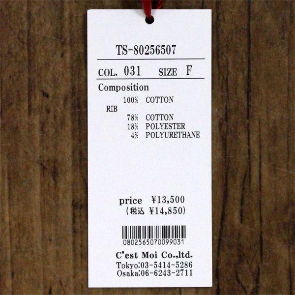 綿100% (リブ)綿78% ポリエステル18% ポリウレタン4%
