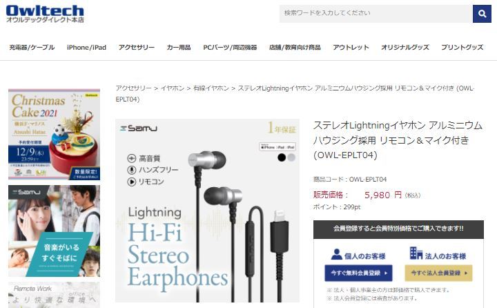・Lightningコネクターで高音質オーディオを楽しむ有線イヤホン