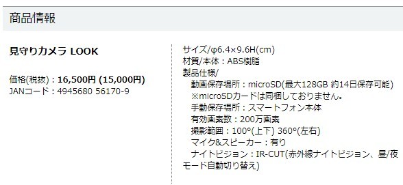 商品名/見守りカメラ LOOK