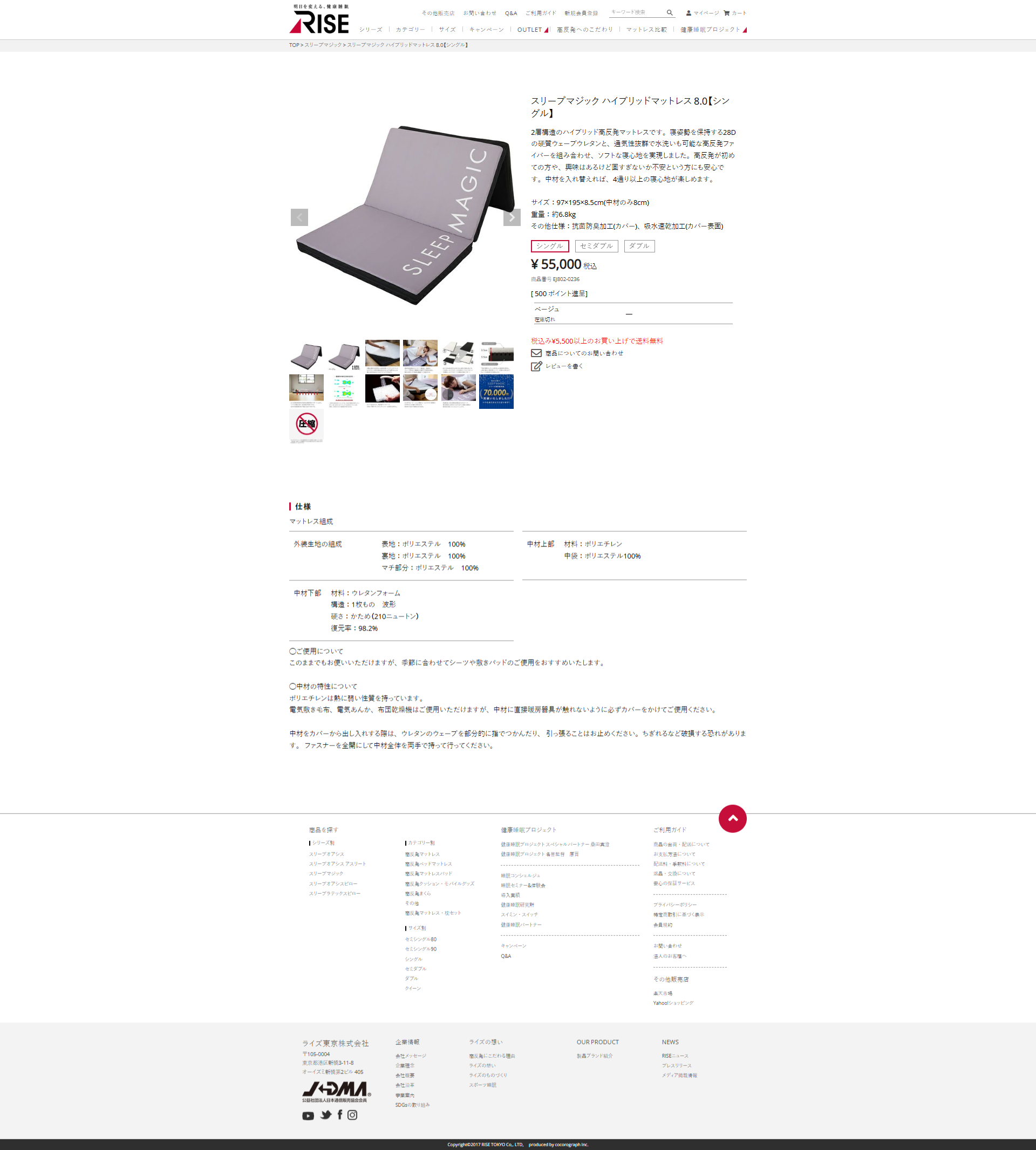 ハイブリッド マットレス 8.0 シングル スリープマジック 高反発マットレス 腰痛 三つ折り 折りたたみ RISE ライズ東京 高反発 2層