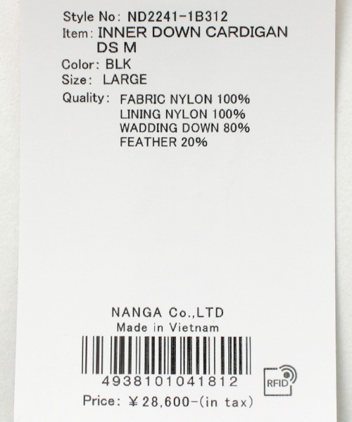 NANGA(ナンガ) インナー ダウンカーディガン デタッチャブル スリーブ / メンズ 軽量 撥水 長袖 半袖 ダウンT Tシャツ