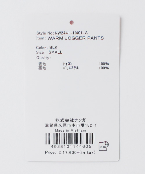 NANGA(ナンガ) ウォーム ジョガーパンツ / メンズ ナイロン イージーパンツ 総ゴム WARM JOGGER PANTS