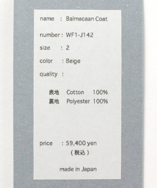 FUJITO(フジト) バルマカーンコート 壁撚オックス / メンズ ライトアウター コットン 裏地 ステンカラー 日本製