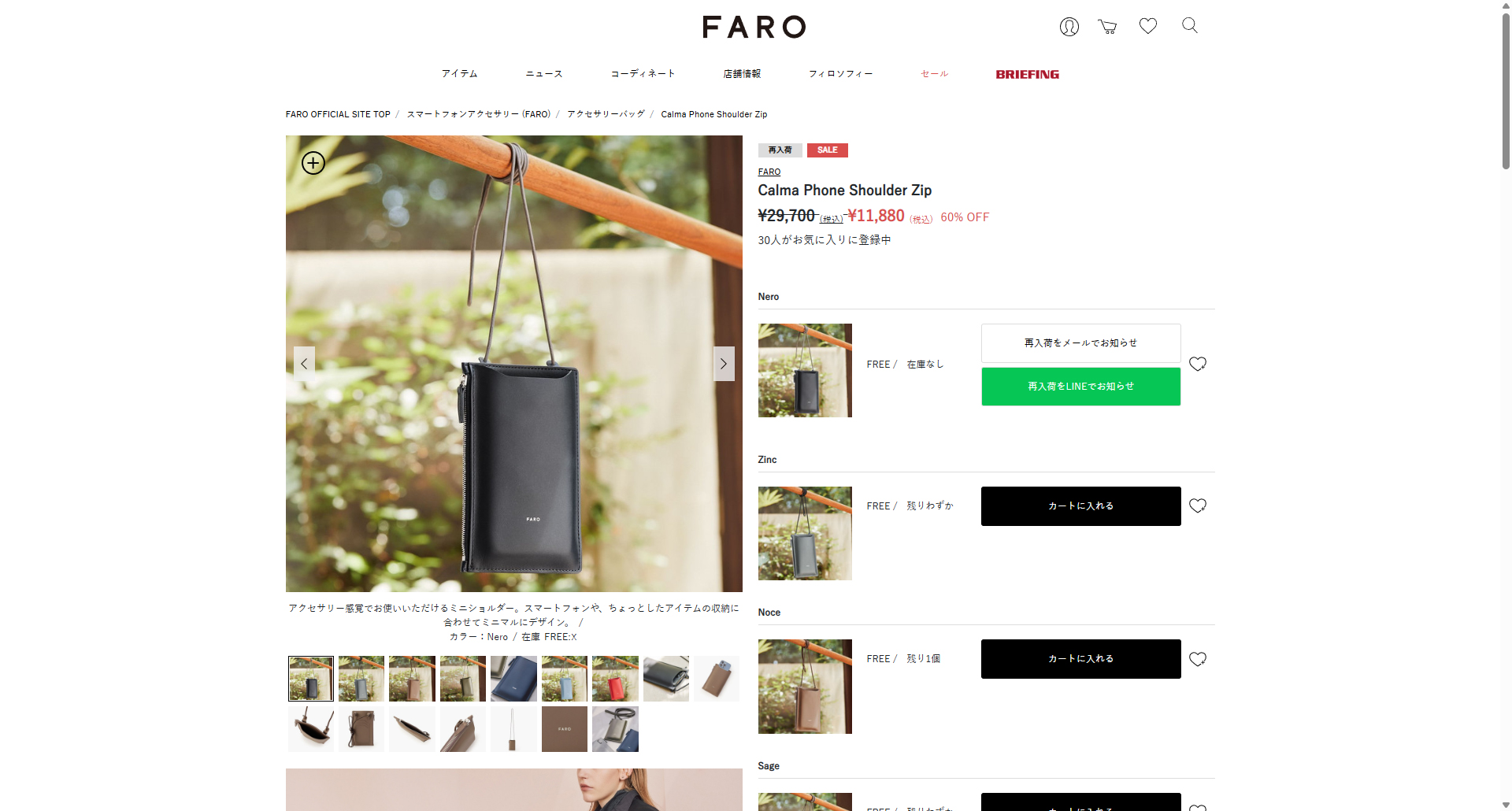 最大50% 1/25限定 FARO ファーロ ショルダーポーチ スマホポーチ メンズ レディース ブランド レザー 本革 軽量 薄型 黒 イタリア製 Calma F2337G302 在庫限り