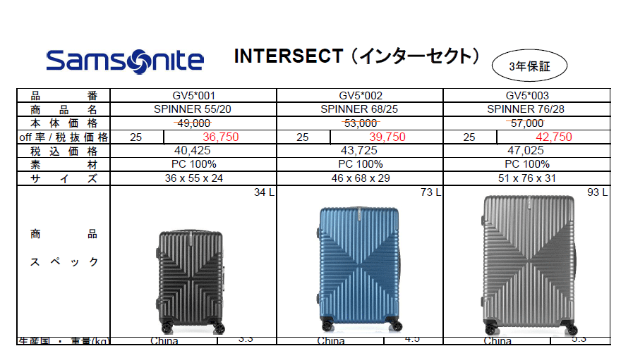 Samsonite INTERSECT SPINNER 68/25 出張 旅行 帰省 73リットル
