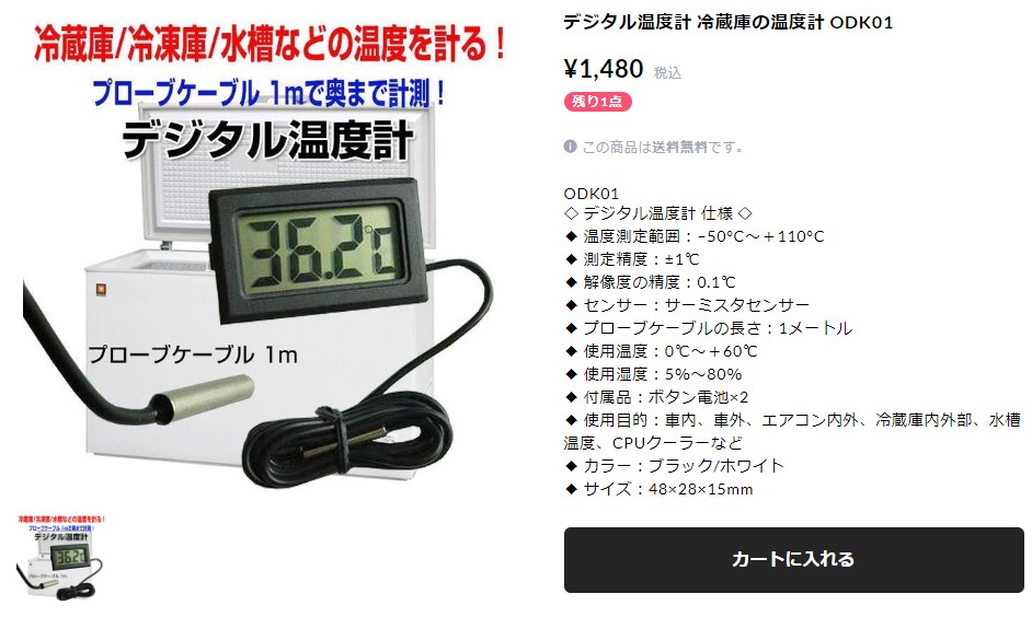 注文後数日で届き、お安く購入することができて助かりました。冷蔵庫で使用するつもりだったので本体が磁石で貼り付けられるとより良かったのですが、それはこちらで工夫することにします。コンパクトな大きさで表示も見やすくあまり邪魔にならない作りで良かったです。