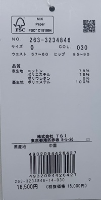【素材】表生地:コットン78%、ポリエステル16%、ポリウレタン6% 裏生地:ポリエステル100%