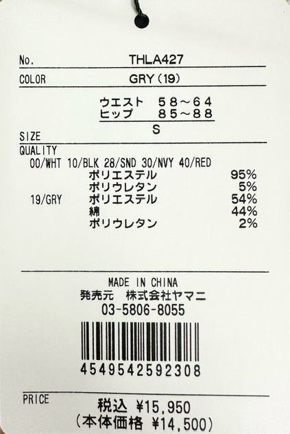 ポリエステル54%、綿44%、ポリウレタン2%