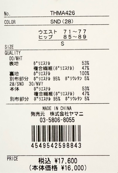 S:ウエスト71-77、ヒップ85-89 cm
