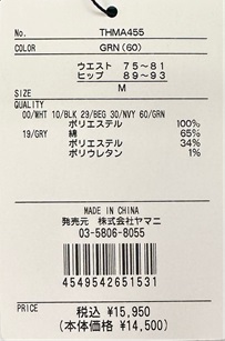 綿65% ポリエステル34%、ポリウレタン1%