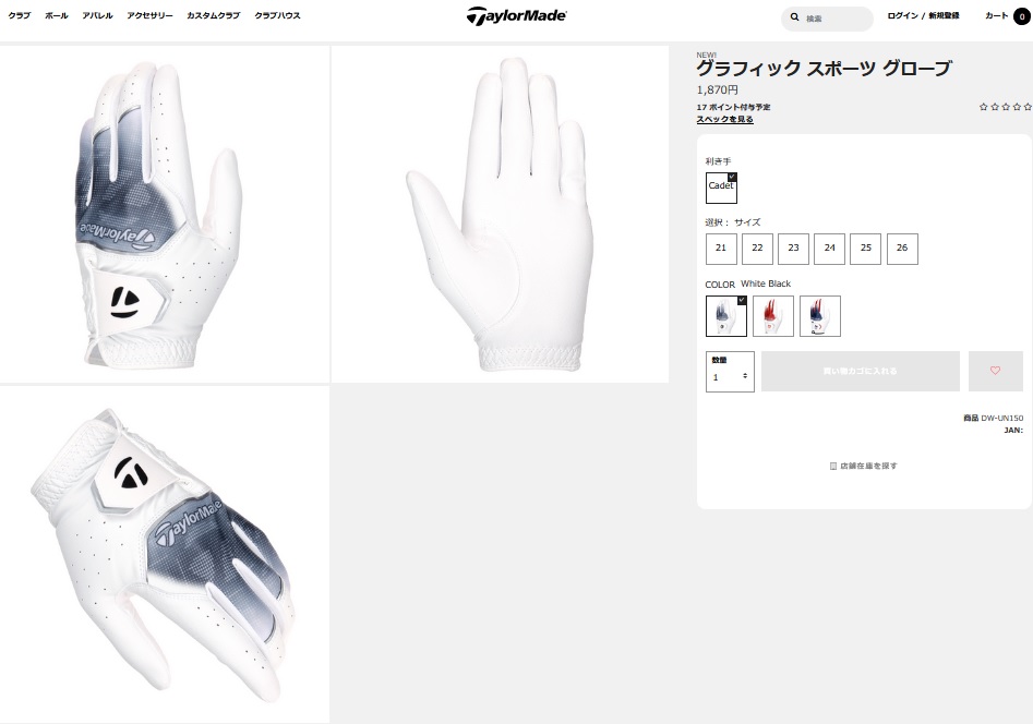 TaylorMade 左手用 グローブ
