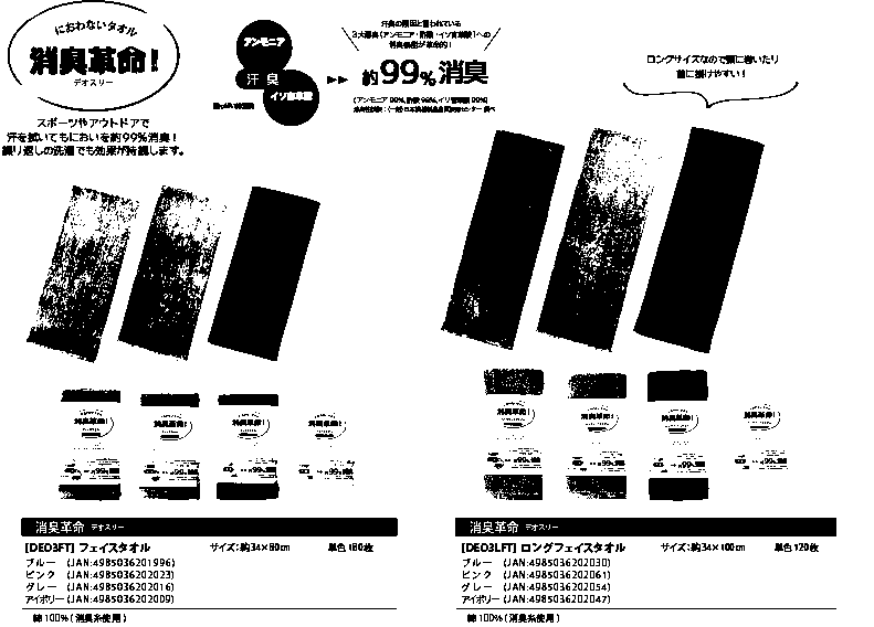 ※お取り寄せ※消臭革命 デオスリー フェイスタオル 4色 お買得セット