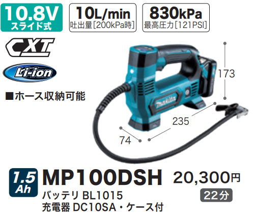 マキタ 純正 充電式 空気入れ [バッテリ・充電器・ケース付] MP100DSH