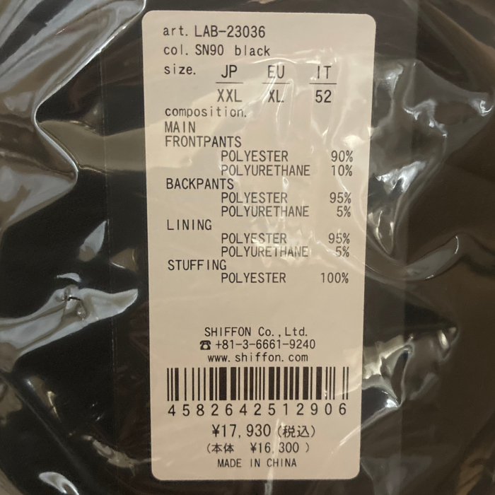裏地:ポリエステル95%, ポリウレタン5%