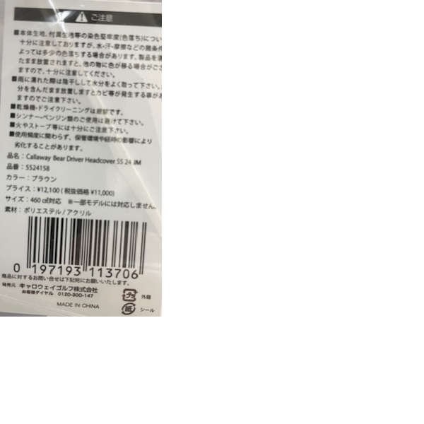 キャロウェイ ゴルフ ヘッドカバー ベア ヘッドカバー SS 24 JM ドライバー用 Callaway Golf (5524158) (5524159)