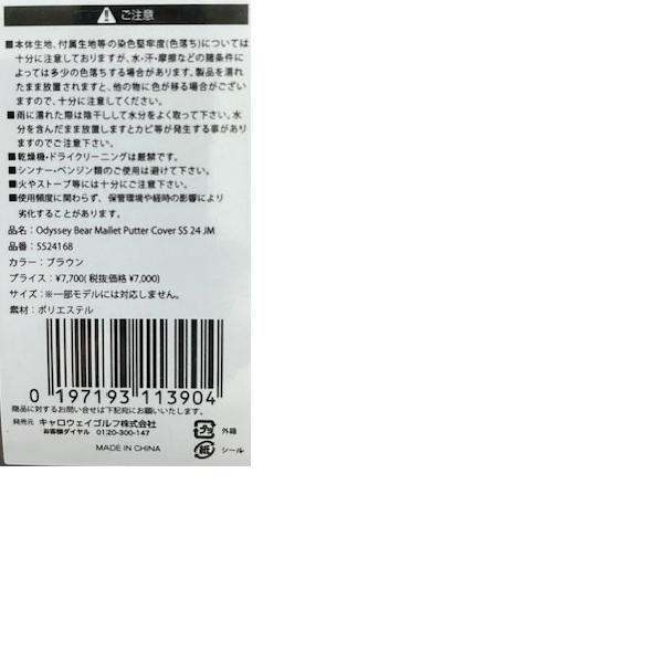 オデッセイ ゴルフ ベア パターカバー SS 24 JM マレット型 Odyssey bear Mallet Putter Cover 24 JM (5524168) (5524169)