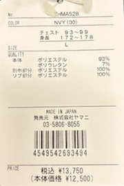 本体:ポリエステル93% ポリウレタン7%、別布部分:ポリエステル100%、リブ部分:ポリエステル100%