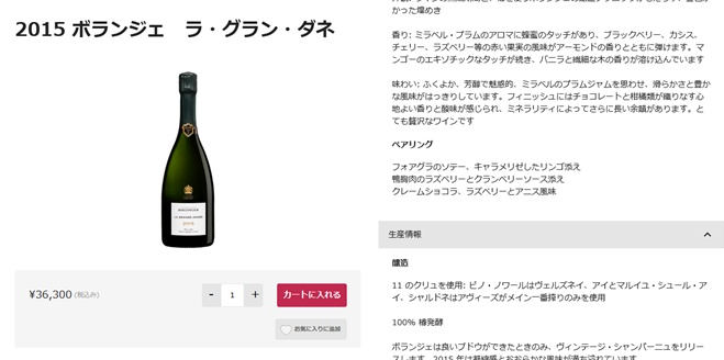 ボランジェ ラ グランダネ 2015年 箱無し 750ml (正規品 シャンパン シャンパーニュ クリュッグと並ぶトップメゾン 007 ジェームズ ボンド愛飲)