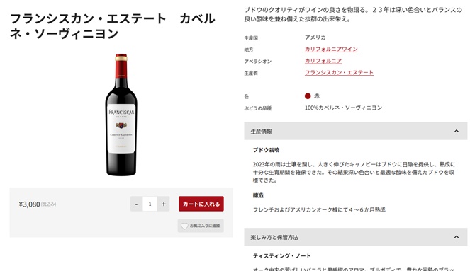商品名:フランシスカン エステート カベルネ ソーヴィニヨン カリフォルニア