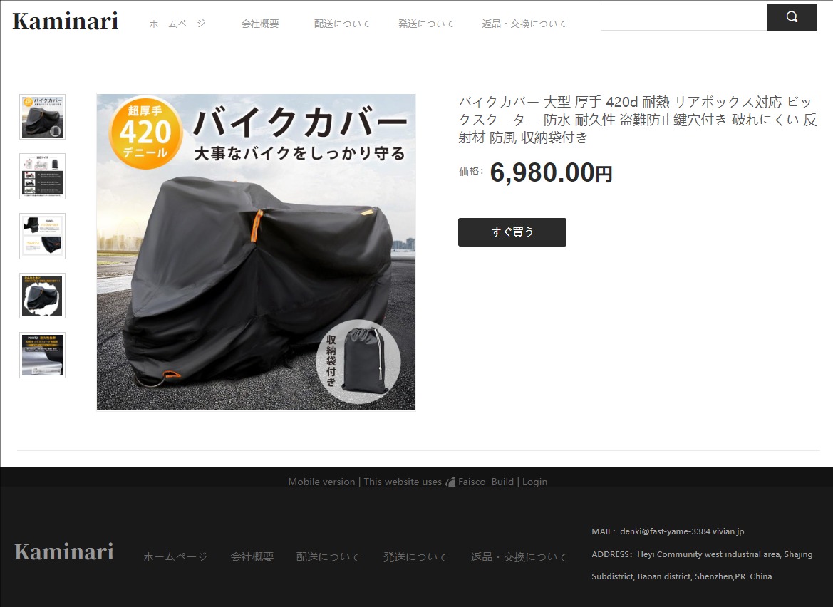 注文から発送までは、5日程かかったような気がしました。 まだカバーは、使用していないので、製品自体の感想は分かりませんが、緑の🟢ビニール袋に入って送られてきました。持ってみたら、ずっしり重かったです。これから使用して、長持ちするとよいなぁっと思います。外に保管する125のバイクの保護に、、日に当たり劣化するから使用してからのお楽しみです