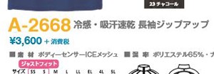 A-2668 CO-COS 冷感・吸汗速乾 長袖ジップアップ 肌面に使用した冷感素材が、爽やかで快適な着心地を実現。