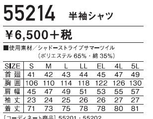 55214 半袖シャツ 作業服 作業着 シャドーストライプ ジャウィン Jawin 自重堂 春夏用素材