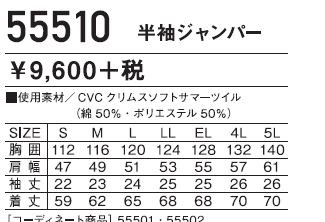 55510 半袖ブルゾン 作業服 作業着 アクティブ ジャウィン Jawin 自重堂 春夏用素材
