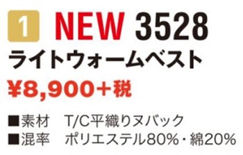 TS-DESIGN 藤和 3528 ライトウォームベスト 防寒着 軽量 男女兼用